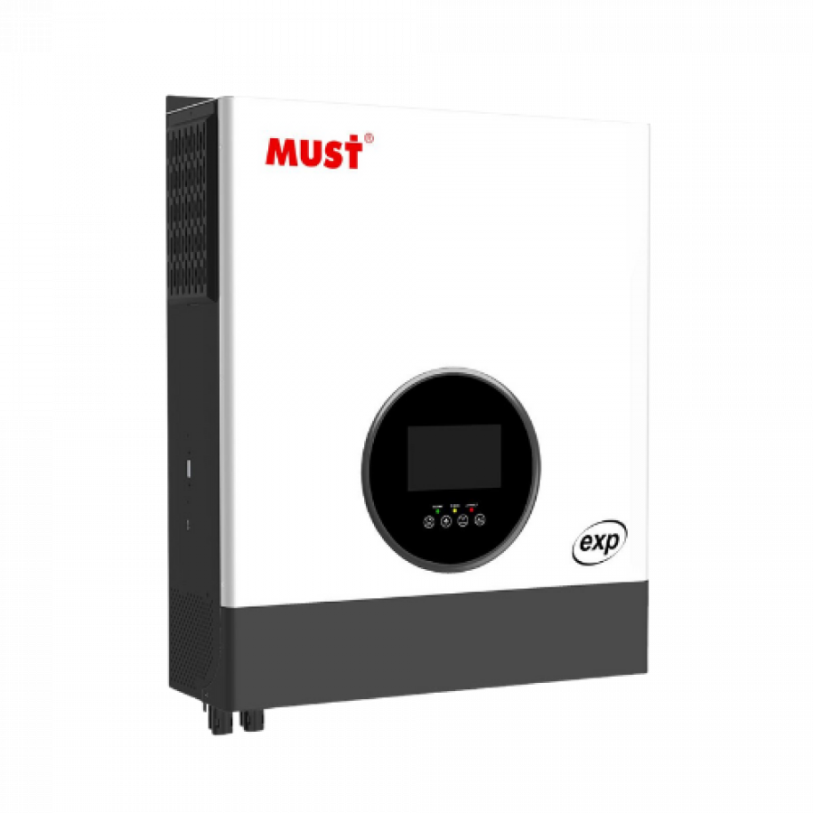 The MUST 6.2KW Hybrid Inverter from the PV1900 EXP Series combines inverter, dual MPPT solar charge controllers, and battery charger in one compact unit for seamless energy management in residential and light commercial systems.