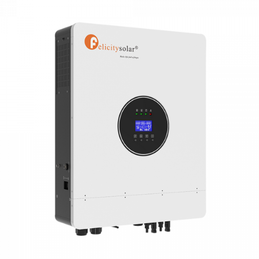 The Felicity 8KW 48V inverter is a high-capacity, intelligent solar inverter that integrates a pure sine wave inverter, dual MPPT solar charge controllers, and a smart battery charger in one powerful unit. Ideal for residential and commercial systems requiring maximum energy efficiency and robust performance.