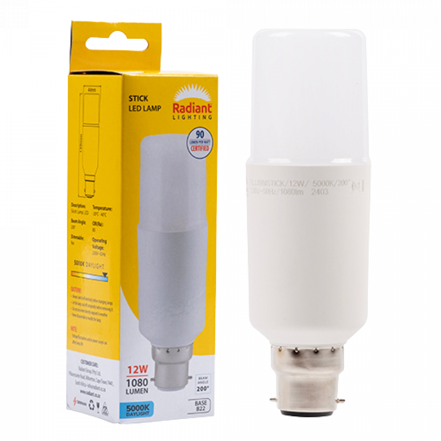 Powerful and efficient 12W Radiant frosted LED stick lamp ideal for tight spaces—offering bright, soft light with excellent energy savings.