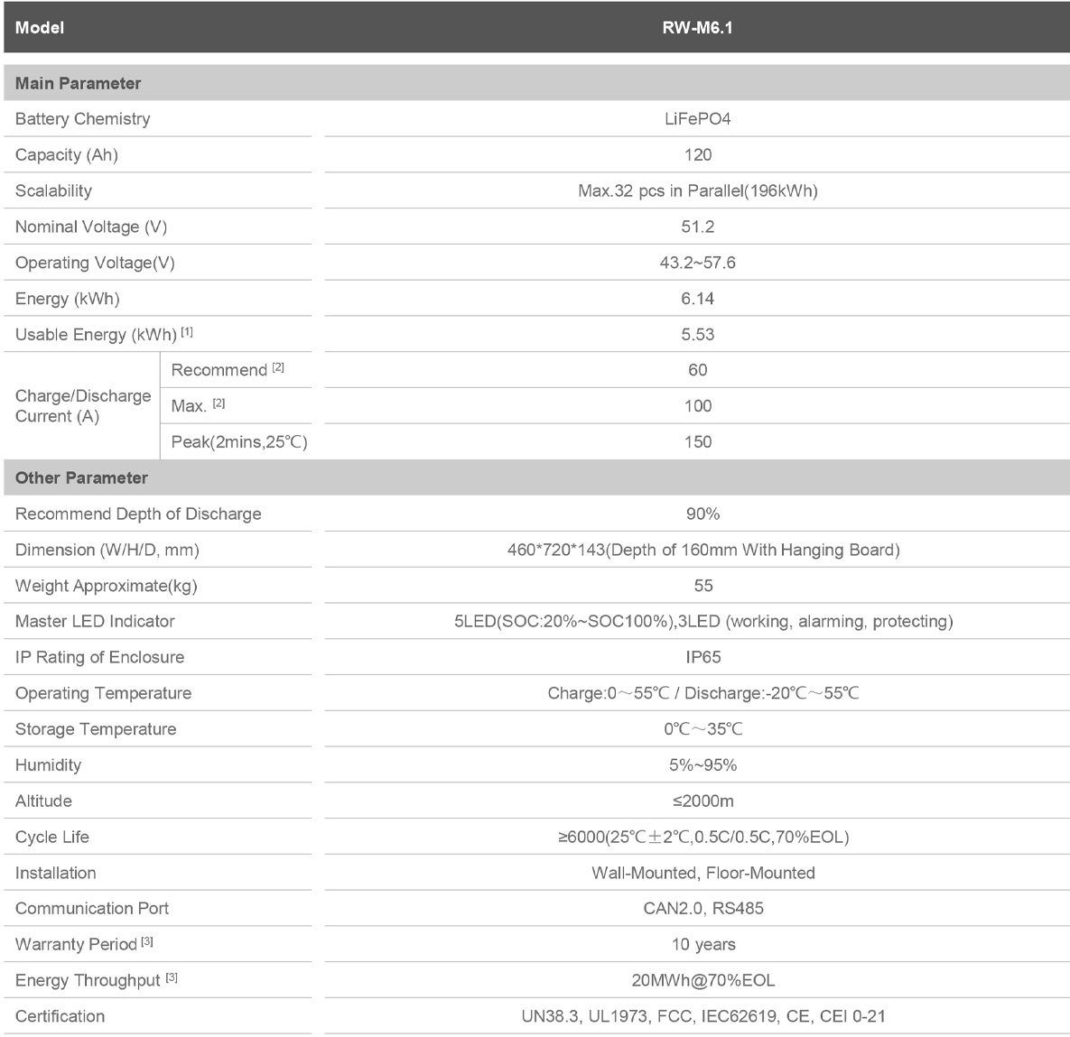 - Depth of Discharge: 90% DoD with a cycle life of 6000 cycles for long-term performance.
